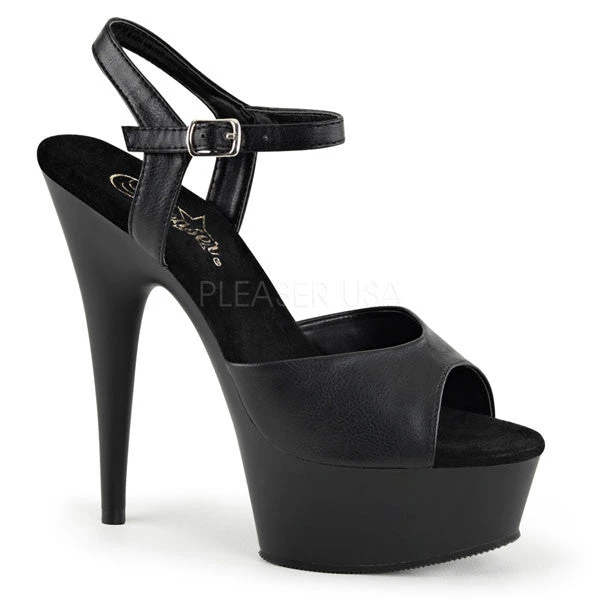 High heel Delight-609 platform sandals by Pleaser, with ankle strap style. These sandals have 6″ spiked stiletto heel and high front platform.