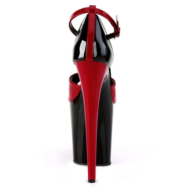 Two-tone platform sandals with skinny ankle strap and 8″ stiletto heel . The Flamingo-889 shoes feature a closed back, contrast heel, and adjustable buckle closure.